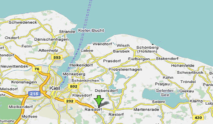 Verlassen Sie die A215 an der Ausfahrt Kiel Richtung Puttgarden.